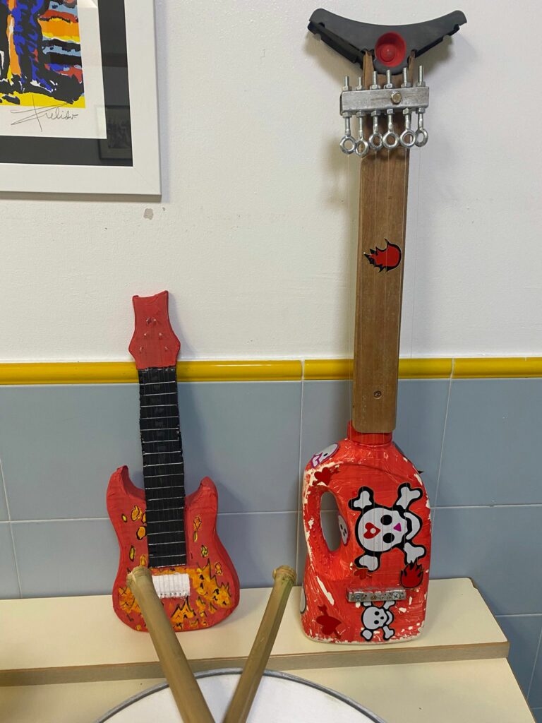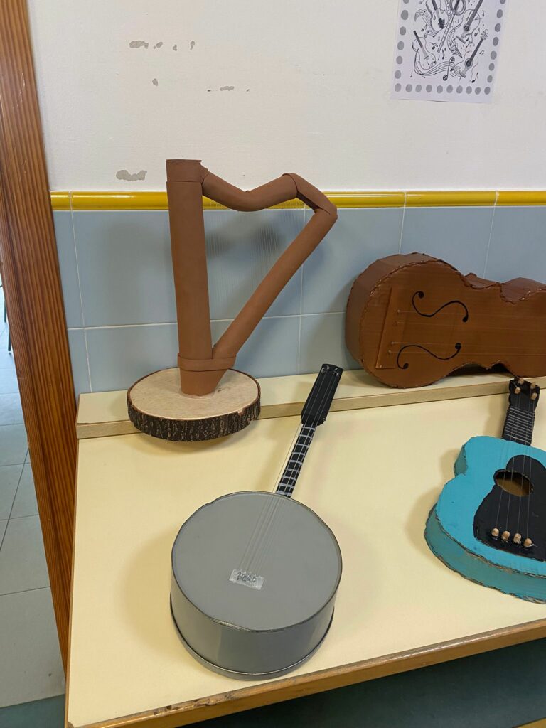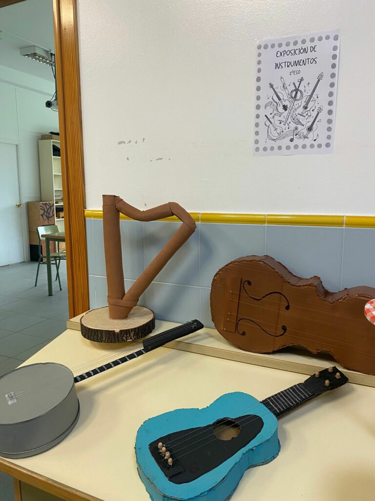 O alumnado de 2º ESO levou a cabo unha mostra de instrumentos musicais elaborados por eles ao longo de todo o proceso. Empregando sobre todo cartón, botellas, gomas, anacos de madeira e outros recursos, puxeron de manifesto a súa creatividade e destreza no ámbito musical e artístico.